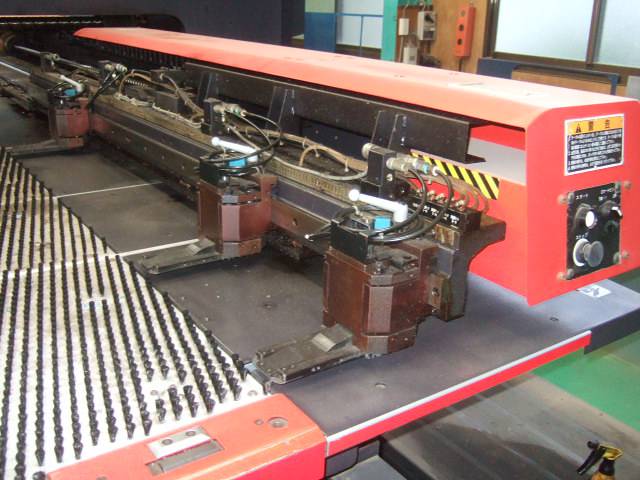 ACサーボダイレクトツインドライブ, 最大加工寸法:1270*2500mm(ワンクランプ), 20T, 58st, 2A/I,NC:AMNC-F, エアブロー付, ブラシテーブル, 金型付